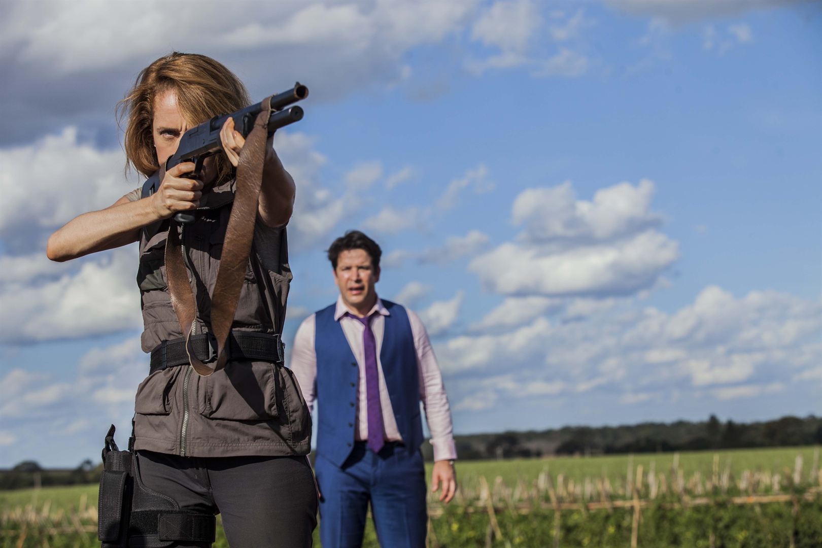 Vinte anos atrás, a caipira Noeli (Camila Morgado) abandonou o noivo e a família para fugir com o carioca Júlio (Murilo Benício, na foto com Camila). Juntos, eles fizeram fortuna em Ribeirão Preto, no interior de São Paulo, por causa de um molho de tomate. A situação afetiva do casal, agora, não anda boa. Ela implica até com a risada dele, enquanto ele a irrita perguntando o preço de tudo o que ela compra. Embora ricos, a felicidade conjugal foi para escanteio. Divórcio, a terceira comédia de Pedro Amorim (de Mato sem Cachorro e Superpai), recorre a clichês do cinema americano para a plateia cair no riso. Acerta mais, porém, no retrato (por vezes muito estereotipado) do universo “country” paulista, pouco explorado nas telas — e, aí, a revelação Gustavo Vaz, na pele de um cantor sertanejo, rouba a cena dos protagonistas, esforçados em falar o “caipirês”. Direção: Pedro Amorim (Brasil, 2017, 105min). 12 anos.