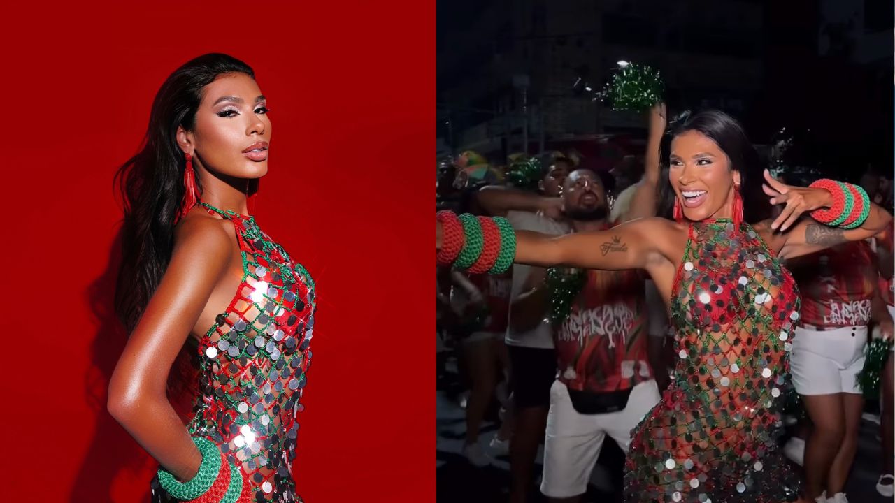 Trajada com um vestido de macramê nas cores verde e vermelha, com brilhos prateados, e pulseiras de tricô, no ensaio, Pocah desfilará no Carnaval de 2026 como destaque do abre-alas. “Isso é cria de Caxias. Respeita a nação do mangue! Voltei, Grande Rio. Bora!”, publicou Pocah nas redes sociais, se referindo ao samba-enredo de 2026.