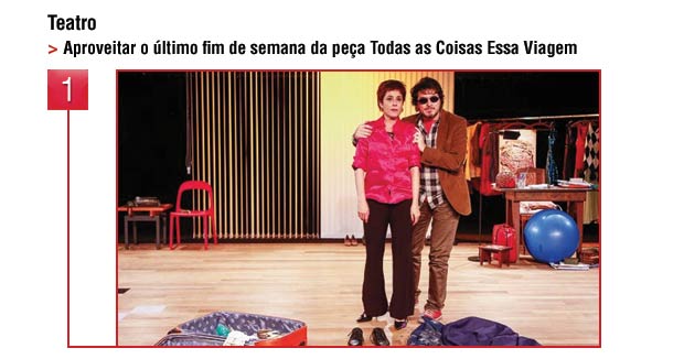 Espaço Sesc ? Mezanino (80 lugares). Rua Domingos Ferreira, 160, ☎ 2547-0156, Copacabana. Quinta a sábado, 21h; domingo, 19h30. R$ 20,00. Bilheteria: a partir das 15h (qua. a dom.). Até domingo (22).