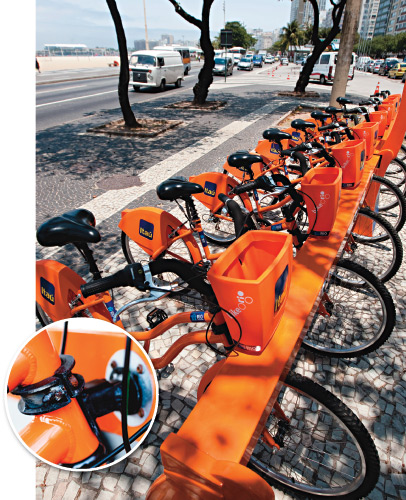 Desde o verão passado, a paisagem da orla ganhou um novo colorido. As laranjinhas, nome pelo qual são chamadas as bicicletas do sistema de aluguel da prefeitura, conquistaram a simpatia de turistas e moradores como meio de transporte e lazer. Com oito meses de operação, o programa conta com 58 estações distribuídas por quinze bairros e ultrapassou a marca de 700 000 viagens. Apesar do seu indiscutível sucesso, um obstáculo pode comprometer o bom funcionamento do serviço: nos últimos três meses, dezenove veículos foram furtados. A maioria dos casos registrados obedece a um mesmo roteiro. O bandido ataca durante a madrugada, quando a movimentação nas ruas diminui, e puxa violentamente a peça de aço que trava a bicicleta. “Estamos pesquisando mecanismos ainda mais eficazes de segurança para combater os incidentes”, afirma Ângelo Leite, presidente da Serttel, empresa responsável pelo Bike Rio, reencarnação de uma iniciativa semelhante, lançada em 2009, que fracassou justamente por causa do alto índice de roubos.