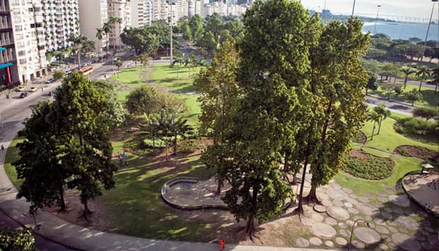 A Praça Cuauhtémoque, no Flamengo, tem vento de sobra, curiosos círculos de cimento desenhados no chão, um nome difícil (de um imperador asteca, com direito a estátua no local), banquinhos, brinquedos, fraldários e árvores gigantes. Aí que mora o perigo. Há anos sem poda, a meia dúzia de exemplares de paus-reis já vai atingindo a altura do nono andar dos prédios em frente, na Avenida Rui Barbosa. Seus frutos têm cerca de 300 gramas e caem quando secam. Despencando de mais de 30 metros, botam em risco os idosos que passaram a se exercitar no gramado desde que, há seis meses, ali foi aberta uma academia ao ar livre para a terceira idade. Parte do complexo paisagístico do Aterro, o logradouro mereceria mais cuidado, e não apenas nas alturas: a base do monumento mexicano está com pichações e desenhos de suásticas nazistas.