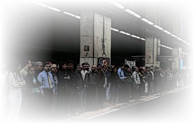 A tensão regressa, e potencializada. Ela se propaga entre todos os passageiros tão logo se vislumbre, pela janela enfeitada de propagandas, o panorama da plataforma na Central. Um oceano de gente que vai se engalfinhar com o outro oceano já presente e acomodado dentro do vagão. Há o ditado que, em casa de pobre, onde come um, comem dois. No metrô, sentido zona sul, 8 horas da manhã, parado na Central, onde cabem 5, cabem 30. E não se sente mais o ar condicionado.