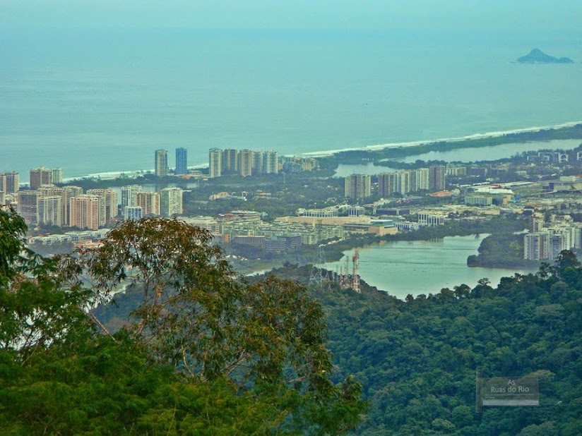 O que se vê. A Pedra da Gávea e o litoral da Barra da Tijuca.