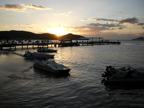 Ao lado do pier, os acqua-táxis transportam os turistas para as diversas praias da face esquerda da península.