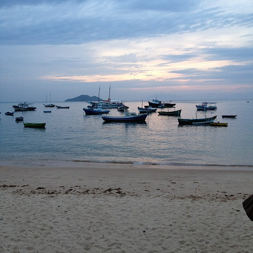 A essa hora o vermelho já tinge as águas da Praia do Canto.