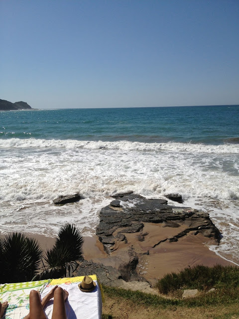 O banho de sol da turista só é perturbado pela subida da maré.