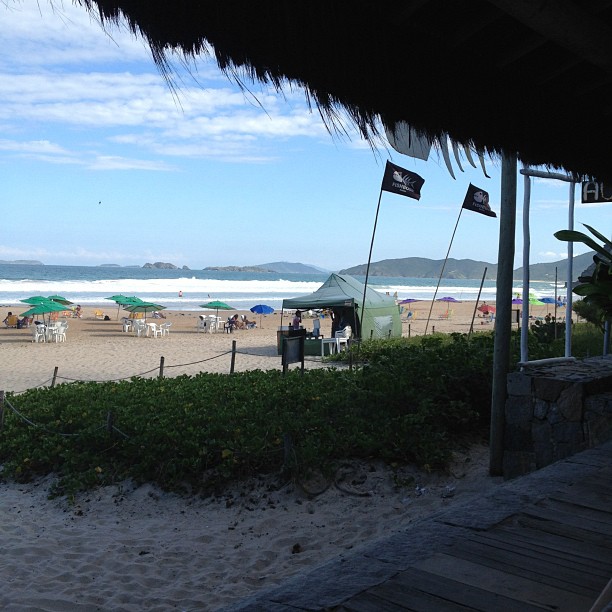 Restaurante com lounge e happy hour é um ponto de agito durante o verão. Aberto de frente para o mar, serve peixes frescos, sucos, saladas e coquetéis.