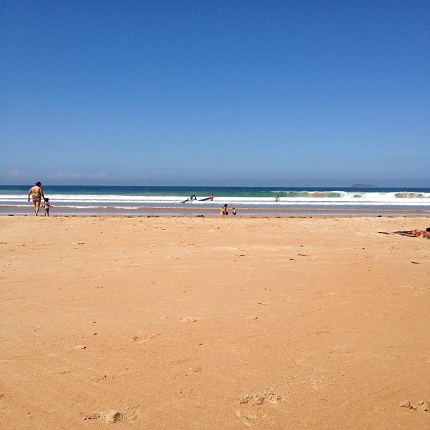 A areia na banda direita da praia é dourada, com um forte tom alaranjado. Trechos onde ela é mais compacta são utilizados para o futebol.