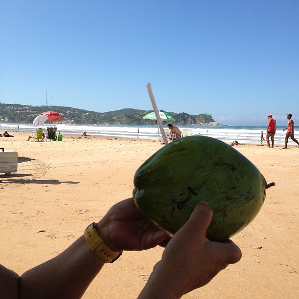 Milho verde e água de coco são oferecidos ao longo de toda a praia.
