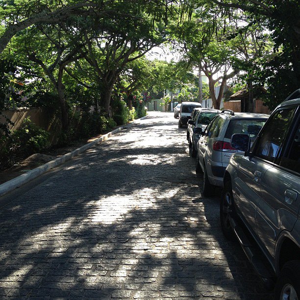 Mais tranquilo, o canto esquerdo da praia abriga a Aldeia de Geribá e tem ruas arborizadas onde estacionar o carro, além de pequenos estacionamentos.