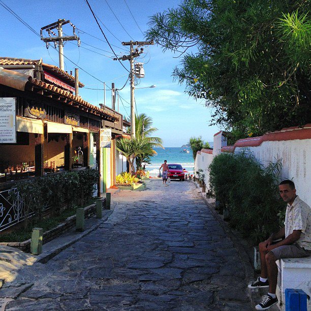 É deste lado que ficam as casas dos pescadores, que dividem as ruas estreitas com bares e algumas casas de veraneio mais modestas. O acesso à praia se dá por ruelas calçadas com pedras no estilo pé-de-moleque.