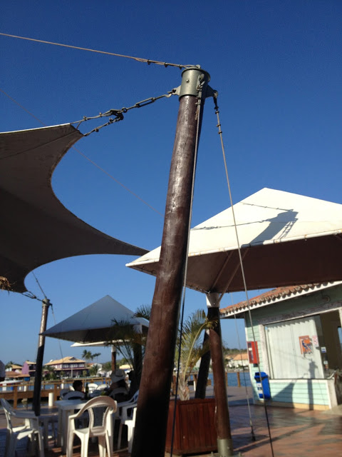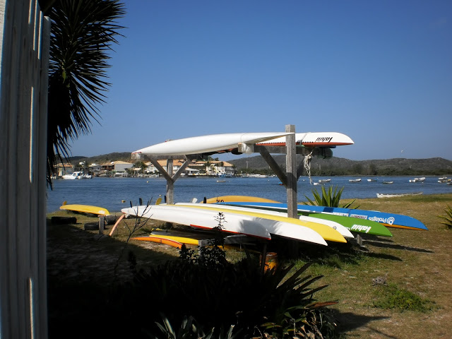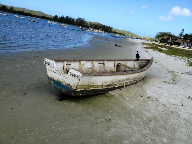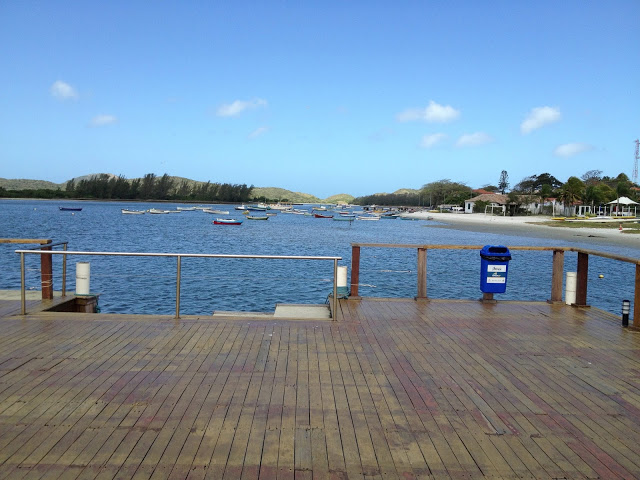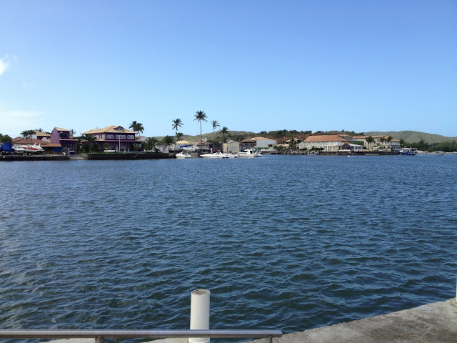 Enquanto o pesqueiro parte para alto mar, lanchas de luxo descansam na marina do outro lado do Itajuru. Esta é a vista que se tem a partir das mesas do único – e bom – restaurante do lugar.