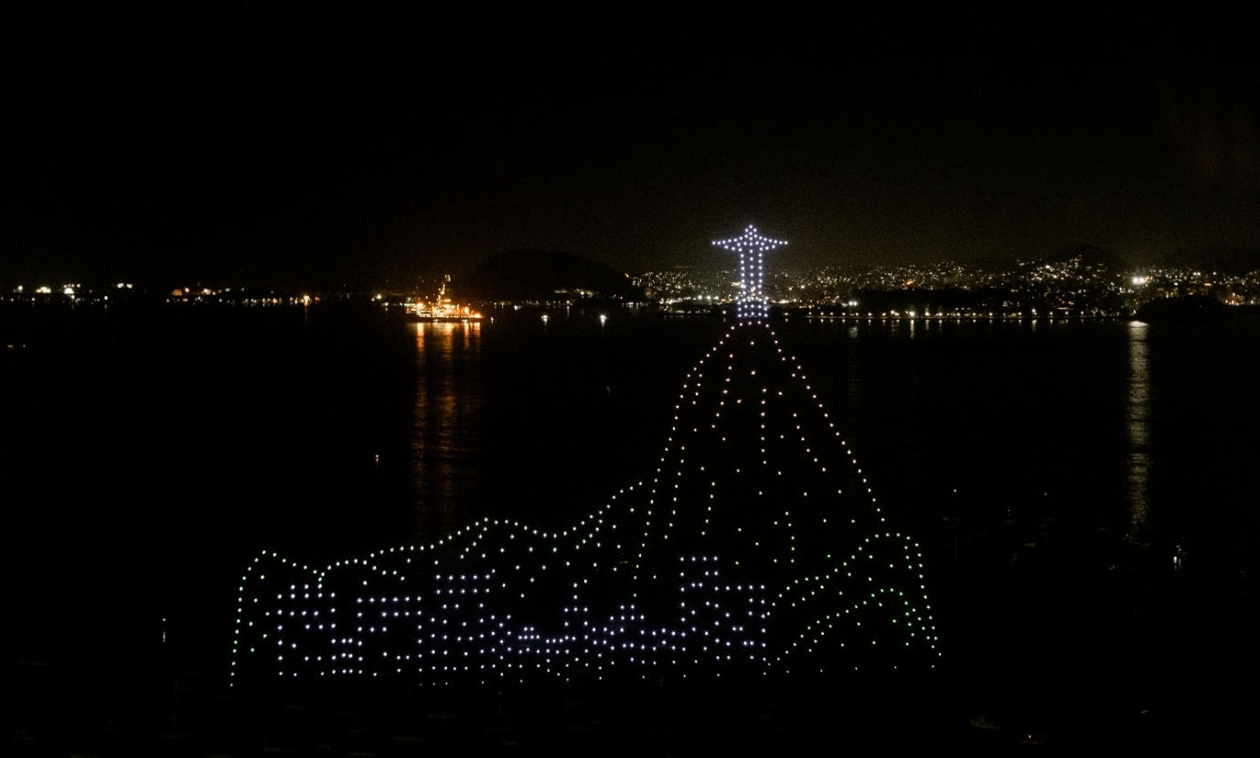 Os objetos voadores formaram imagens de pontos turísticos da cidade como o Cristo Redentor, Bondinho Pão de Açúcar e o calçadão de Copacabana. Tratava-se da celebração de 45 anos do shopping Rio Sul, que recebeu convidados no rooftop da torre comercial para assistir o espetáculo feito por 600 drones.