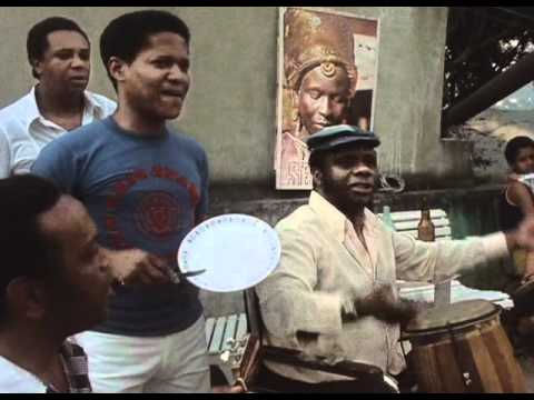Foto meramente ilustrativa, still do histórico documentário Partido Alto (1976), de Leon Hirszman: na foto, o portelense Candeia, com seu indefectível chapéu, e, tenho quase certeza, um jovem Tantinho da Mangueira de faca e prato na mão