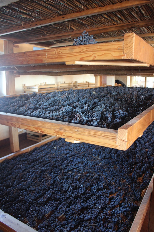 As uvas utlizadas em sua elaboraão são colhidas bem maduras, normalmente na primeira quinzena de outubro e depois são submetidas a um processo chamado appassimento.