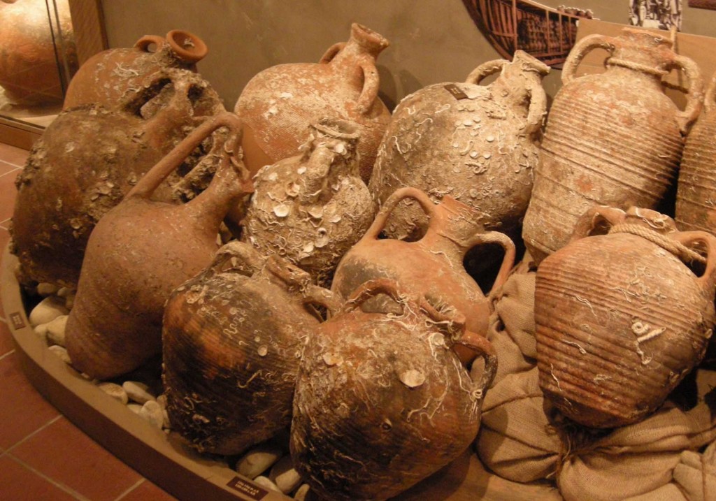 Ânforas de vinho em um museu grego