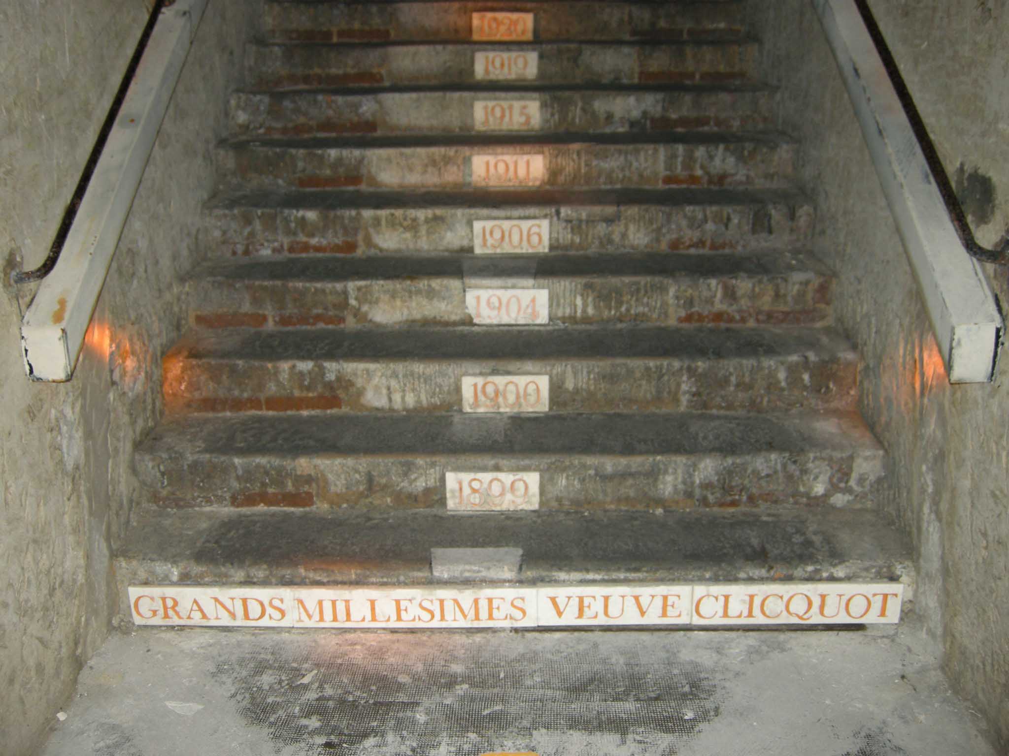 Uma escada que lembra as melhores safras da Veuve Clicquot