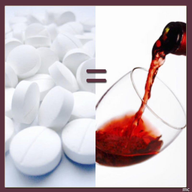 Na cardiologia a aspirina é indicada para reduzir o risco de enfarte do miocárdio, já que age como vasodilatador. Mas existem efeitos colaterais sérios no uso contínuo desse medicamento. Segundo o site espanhol vinetur.com, pesquisadores descobriram que o vinho possui o mesmo princípio ativo da aspirina – o ácido acetilsalicílico – em quantidades equivalentes ao medicamento. Se pensávamos que apenas os polifenóis do vinho já eram de grande benefício ao corpo, agora temos mais um motivo para esse delicioso hábito.