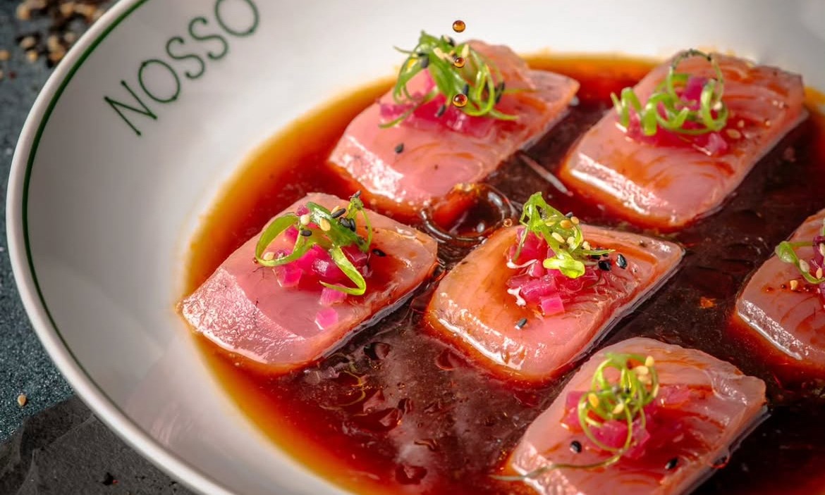 Nas fusões e desenhos asiáticos do cardápio do chef Bruno Katz no Nosso (Rua Maria Quitéria, 91 Ipanema), o crudo de atum traz lâminas do peixe em leve cozimento, molho ponzu de pimenta-de-cheiro, furikake, pimenta la-yu e cebolinha (R$ 62,00).