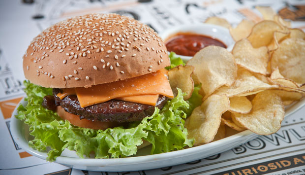 Entre uma partida e outra, a turma se distrai com o cardápio típico dos casual dinnings americanos, que oferece de petiscos a refeições, sem economizar nas calorias. Carro-chefe da ala de sanduíches, o american bowling é um hambúrguer de picanha com cebolas carameladas, pepino em conserva, queijo cheddar, alface e tomate em bom pão de gergelim (R$ 25,50). Pedida atraente, chega ao lado de crocantes chips de batata e molho barbecue. Outra sugestão, o cachorro-quente com cheddar derretido e molho de tomate também é escoltado por rodelas fininhas de batata frita (R$ 19,50). Da seção doce, prove o suflê de chocolate acompanhado de chantili e sorvetes de creme com castanha e de chocolate (R$ 19,50). Aviso: para pagar a conta é preciso se dirigir ao caixa. Diante de tantas guloseimas, cuidado para não sair rolando como as bolas de boliche.