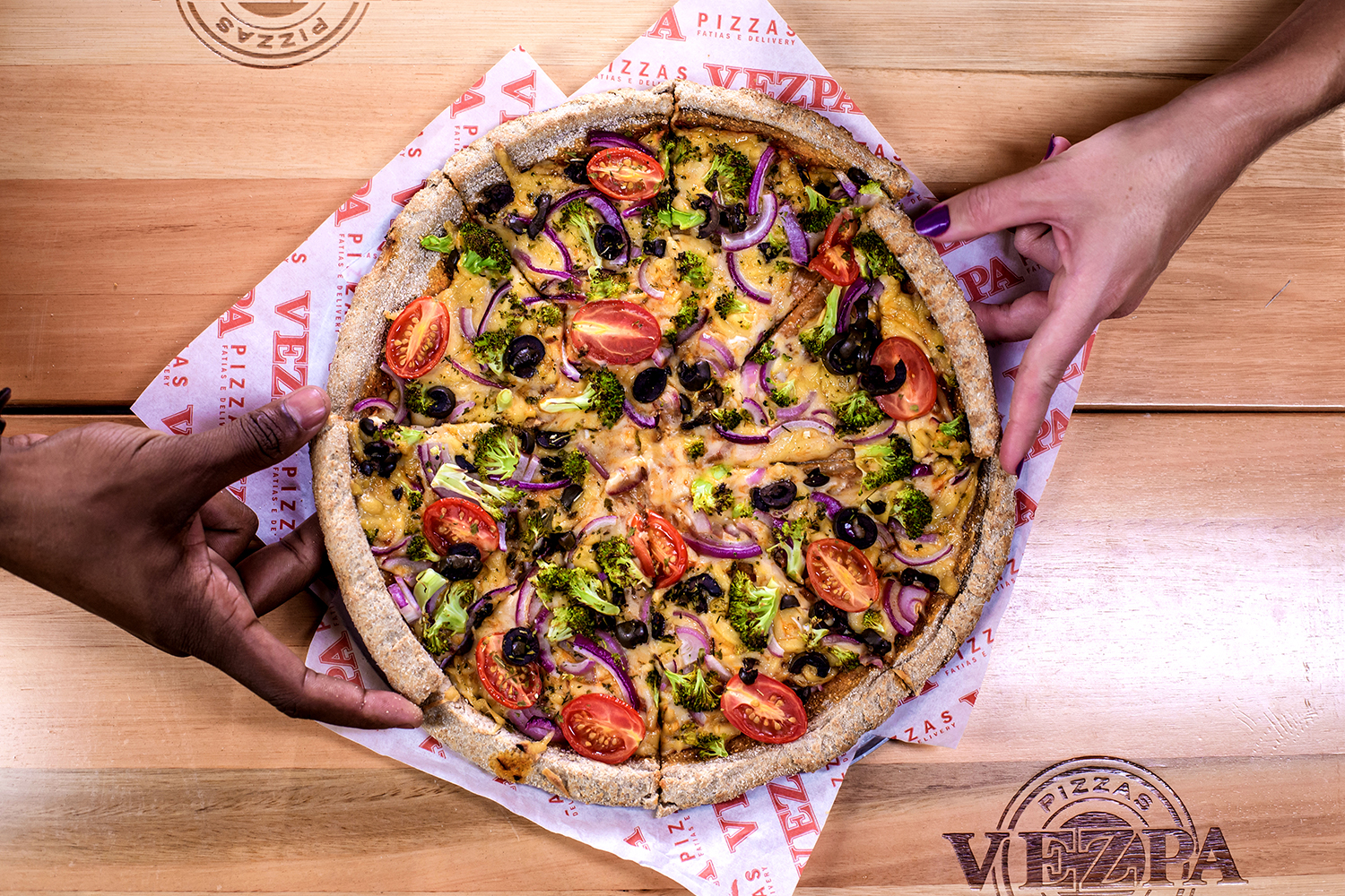 Até mesmo as pizzarias estão se rendendo à invasão vegana, criando opções para a turma que não consome produtos de origem animal nem derivados como o queijo. A Vezpa, com 21 lojas da Barra ao Centro e delivery pelo vezpa.com.br, agora dispõe de uma versão assinada pela turma do Pura Raiz, de hambúrgueres naturebas. Na cobertura entram molho de tomate, queijo da marca Nomoo, à base de leite de castanhas, brócolis, tomate-cereja, cebola-roxa, azeitona e orégano. Cada fatia sai a 12,90 reais.