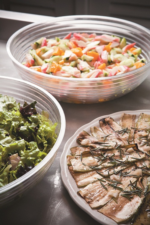 Para iniciar o repasto, o sortimento prevê duas ou três saladas prontas. Uma delas,