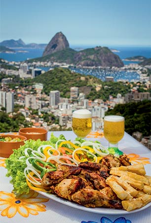 A casa no alto do Morro dos Prazeres serve fartas porções de carnes assadas no bafo. De lá se descortina a vista privilegiada e única da baía, do Pão de Açúcar e do Cristo Redentor. Com esse cartão-postal, o bar foi indicado nesta edição de COMER & BEBER na categoria visual do Rio. Seu Severino, o patriarca, trabalha ao lado dos filhos Leandro e Bruno no preparo de receitas robustas, como a costela suína no bafo, acompanhada de arroz, feijão, baião de dois, feijão-tropeiro, molho à campanha, batata ou aipim frito (R$ 85,00, para quatro pessoas). Também fornidos são a carne de sol e o frango completo, servidos com as mesmas guarnições (R$ 50,00, para três pessoas). A batidinha de gengibre pode abrir os trabalhos (R$ 5,00 a dose), mas também há sabores de coco, cajá e de melancia. As cervejas em garrafas de 600 mililitros são as usuais Original, Serramalte (R$ 10,00), Brahma e Antarctica (R$ 9,00). Para petiscar, vá de linguiça toscana com batata ou aipim (R$ 23,00) ou peça o bolinho de bacalhau frito na hora (R$ 4,50 a unidade).