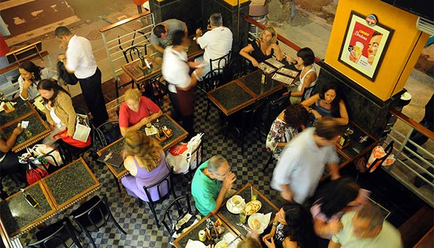 O endereço resiste como pedida certa para a saideira: nunca baixa as portas. A comodidade tem preço. Na madrugada, a partir de meia–noite, o valor do chope Brahma sofre acréscimo de R$ 2,90 — a tulipa sai a R$ 8,90. Na versão black, na taça de 400 mililitros não há adicional noturno: custa R$ 13,00 a qualquer hora. Petiscos clássicos, como empada aberta de camarão com catupiry (R$ 14,00) e bolinho de bacalhau (R$ 7,00), dividem as atenções com hambúrgueres caprichados que podem ser servidos no brioche ou no pão australiano (R$ 28,90 cada sugestão). O que leva o nome da casa reúne 200 gramas de um blend de picanha, fraldinha e linguiça, queijo gruyère, farofa de bacon, banana-da–terra crocante e molho de mostarda de Dijon. A carne do hambúrguer do chef resulta do processamento de fraldinha, bacon e maminha, também com 200 gramas, e é ladeada por queijo gorgonzola, cebola dorée e maionese agridoce. Acompanham os pedidos, respectivamente, batata canoa e chips de aipim.