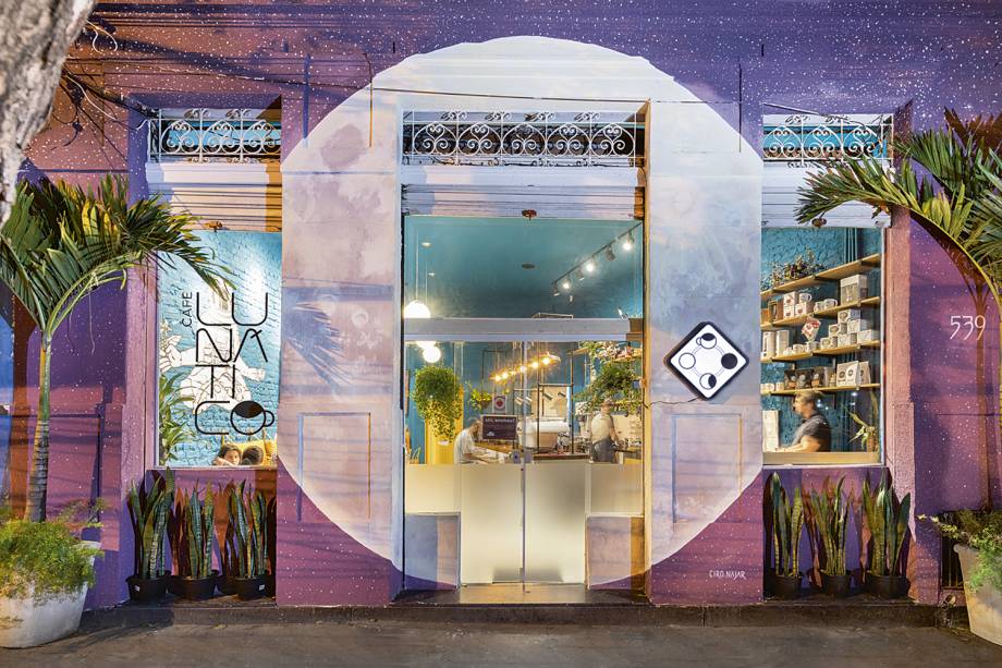 “Cabeça na lua, pés no cafezal” é o lema deste simpático estabelecimento que tem inspiração na astrologia e adoração pelo café. Uma equipe de baristas em constante treinamento faz a curadoria de grãos de diferentes regiões brasileiras, dando prioridade aos pequenos produtores. Mais do que servir uma bebida de qualidade, aqui a ideia é abrir espaço para conversas sobre o fruto. O cardápio, bem-humorado, traz descrições com alusões ao espaço e aos signos: aquário é o café turco com especiarias (R$ 11,00), touro é o shake de Ovomaltine com expresso duplo e sorvete artesanal (R$ 20,00). A bruschetta das galáxias tem tomate confit, parmesão e manjericão no pão ciabatta (R$ 25,00). Já o pão perdido no espaço é uma deliciosa rabanada com caramelo salgado (R$ 25,00).