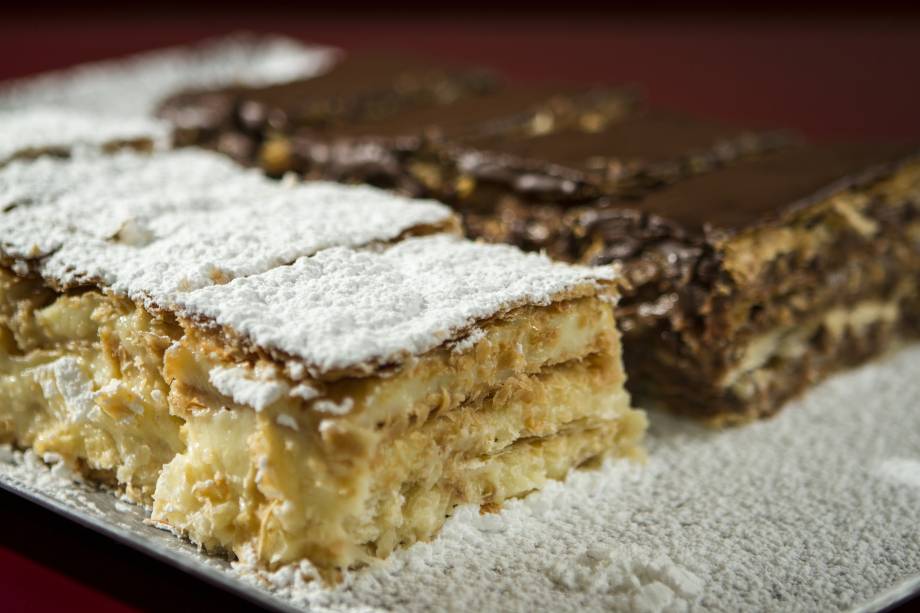 Reduto tradicional em Vila Isabel. Recém‑chegado, o joelho de queijo de minas e mussarela com orégano (R$ 6,70) já conquistou fãs. A qualquer hora do dia, caem bem pedidas como a coxinha de galinha (R$ 7,70 a unidade) e o camarão VM empanado com catupiry (R$ 11,90). Os dadinhos de frango (R$ 6,50, 100 gramas) são cobertos por creme e servidos empanados. Na ala doce, quitutes como a delícia de morango (R$ 8,90), com massa de bomba em formato de rosca e cobertura de chantili e morango, a bomba de chocolate e o mil‑folhas de creme (R$ 7,90 a unidade) têm alta rotatividade na vitrine, o que ajuda a manter o frescor das sugestões. Lançado em 2016, o bolo da casa, vendido por peso (R$ 7,00, 100 gramas), tem massa branca e recheio triplo de nozes, baba de moça e leite condensado cozido, tudo coberto por marshmallow. O bolo inteiro custa R$ 130,00 e rende vinte fatias. Nos fins de semana, as filas são inevitáveis, organizadas com distribuição de senhas e degustação de provinhas gratuitas. O salão no 2o andar abriga mesas para o almoço, em formato de bufê (R$ 6,30 cada 100 gramas).