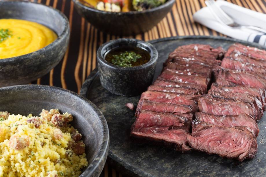 Um menu de sanduíches também estreia em versões como o de pastrami de costela ao molho russo (R$ 50,00), servido a partir das 17h. No cardápio fixo, permanecem os dezessete cortes, como o surpreendente denver steak, retirado do miolo do acém (R$ 180, 500 gramas), que pode acompanhar batatas fritas fininhas (R$ 44,00). O tinto argentino cabernet franc é vinho novo com o rótulo da casa (R$ 150,00, 750 mililitros), e a cerveja IPA Maltada (R$ 28,00, 500 mililitros) tem pegada leve para o estilo, belas companhias para os churrascos deste restaurante de craque.