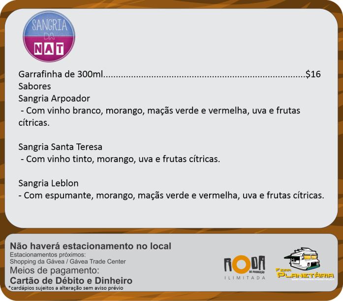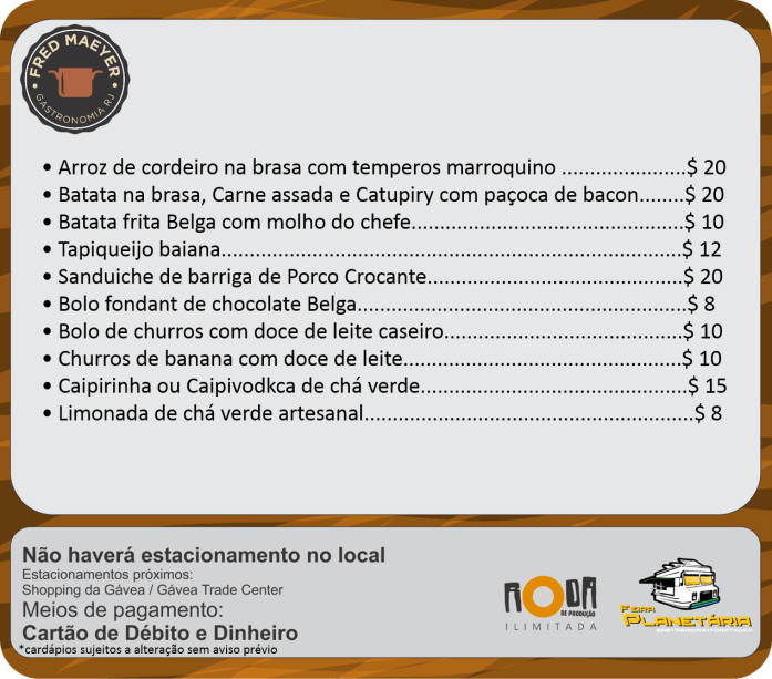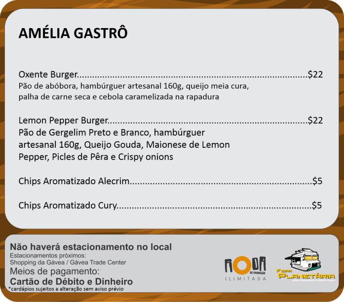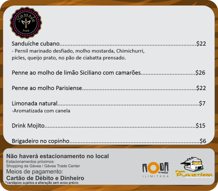Entre os destaques da vez, estão o Al Taglio, com pizzas cortadas na tesoura, o Graviola Truck, conhecido pela comida saudável, o Pilequinho Caipitruck, com criações de drinks originais, e o Los Mendozitos que irá lançar uma nova bicicleta na feira. O Sushi Barcelos e o Delfina, famoso pelos cardápios inspirados na carne de pato, e a batata frita com molhos exóticos do Frites também estarão presentes, assim como o chef Fred de Maeyer, apresentando pratos contemporâneos. Confira detalhes do cardápio na galeria acima.