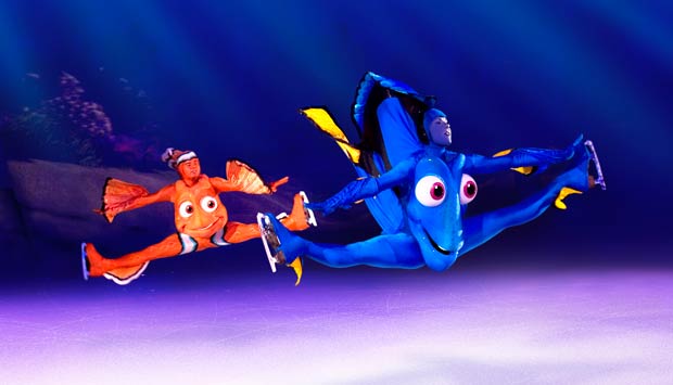 Por ?companhia? para o ilustre camundongo, entenda-se mais de sessenta tipos interpretados por 47 artistas de dez nacionalidades. A lista vai da eterna namoradinha Minnie, Pato Donald e Pateta a diversas outras estrelas da animação do estúdio. Ao longo da sessão, aparecem evoluindo sobre patins, entre outros, Pinóquio, a turma do Rei Leão, as charmosas Bela e Mulan, Aladim e o gênio da lâmpada, os brinquedos Woody e Buzz Lightyear, de Toy Story, e até seres marinhos – os peixes protagonistas de Procurando Nemo ganham pernas para patinar em cena.
