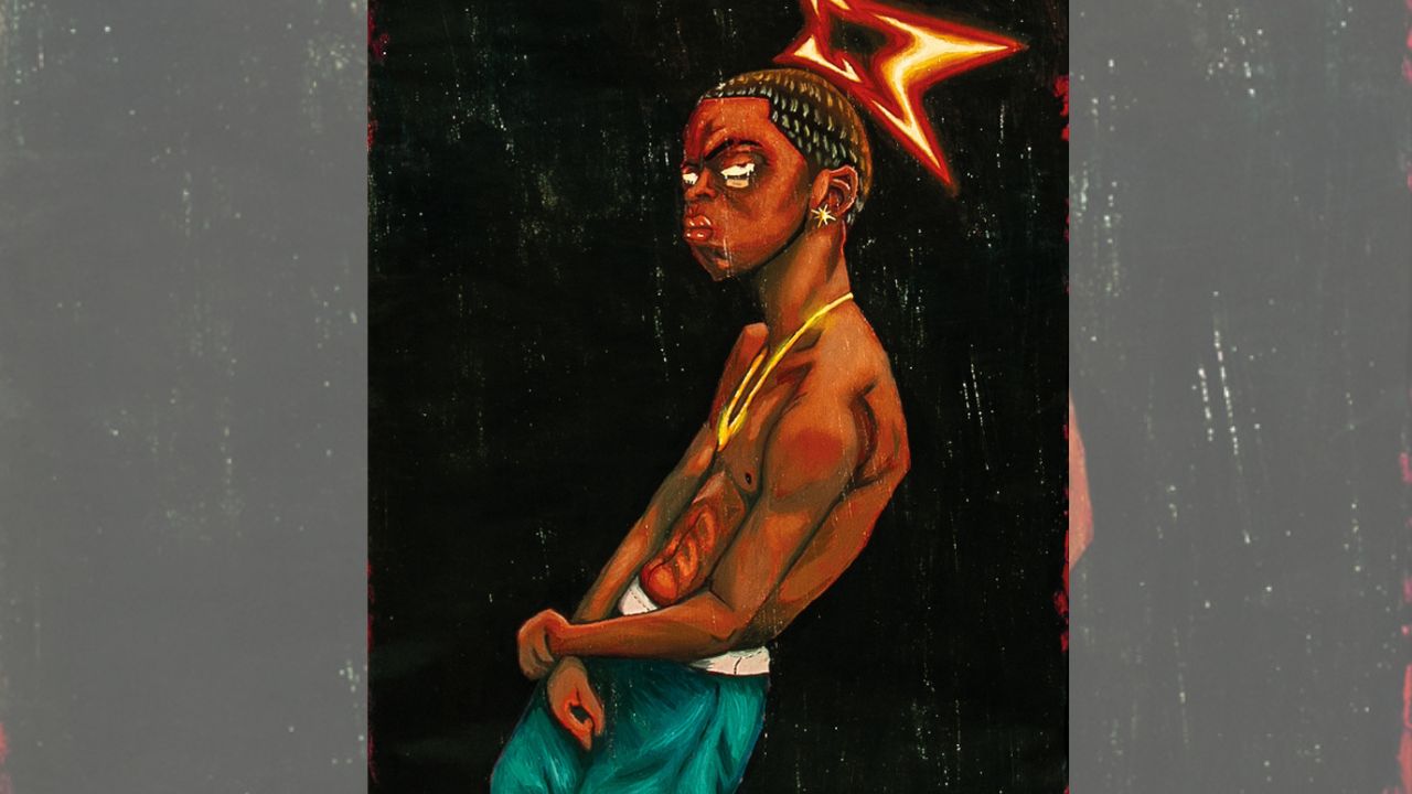 Cety Soleda exibe a máscara Sankofa Elétrica e a escultura O Mensageiro constituídas de lixo eletrônico; enquanto Rxbisco (Bruno Aranha) apresenta as pinturas Aura, Versículo de Um Neguin (foto) e Di Raça, nas quais investiga as relações entre fé, autoestima e ancestralidade no contexto periférico. A curadoria é de Leonardo Moraes.