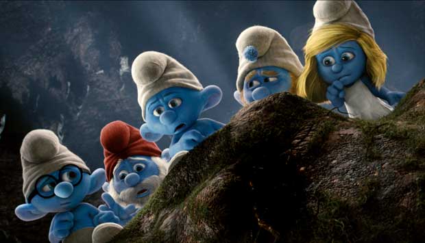 Criados no fim da década de 50, os seres minúsculos de cor azul eram personagens dos quadrinhos. Chegaram ao estrelato a partir de 1981 devido aos mais de 200 episódios de desenhos produzidos pela TV americana até 1990. Mostra-se acertada a transposição ao cinema. Enquanto os smurfs mantêm a origem na animação, os humanos e o vilão Gargamel são interpretados por atores. A mistura lembra a fórmula de Alvin e os Esquilos e HOP – Rebelde sem Páscoa, atrações destinadas ao público infantil que, recheadas de tiradas espertas, caíram também no agrado dos adultos.