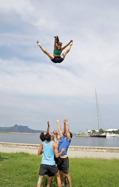 Laçarotes no cabelo, dancinhas coreografadas e versos de incentivo na ponta da língua. Assim são conhecidas as belas e animadas cheerleaders, tradição em eventos esportivos nos Estados Unidos desde a década de 20. A mais de 6 000 quilômetros de lá, porém, no Ginásio de Esportes Caio Martins, em Niterói, um grupo de 26 atletas treina incansavelmente, há dois meses, diferentes acrobacias e movimentos de ginástica olímpica e dança. Trata-se da seleção brasileira de cheerleading, criada no ano passado, que disputará pela primeira vez a Copa do Mundo da modalidade. Sim, para muitos, hoje, a atividade é considerada um esporte – e inclui até rapazes nos times. Marcado para os dias 23 e 24 de abril em Orlando, na Flórida, o torneio terá a participação de setenta países. O objetivo da nossa comitiva é ficar entre as dez melhores. “Ainda estamos engatinhando, mas não somos os piores do mundo”, diverte-se o professor de educação física Leandro Rente, 27 anos, um dos três treinadores do Brasil, tricampeão nacional e integrante da equipe carioca Rio Allstars.