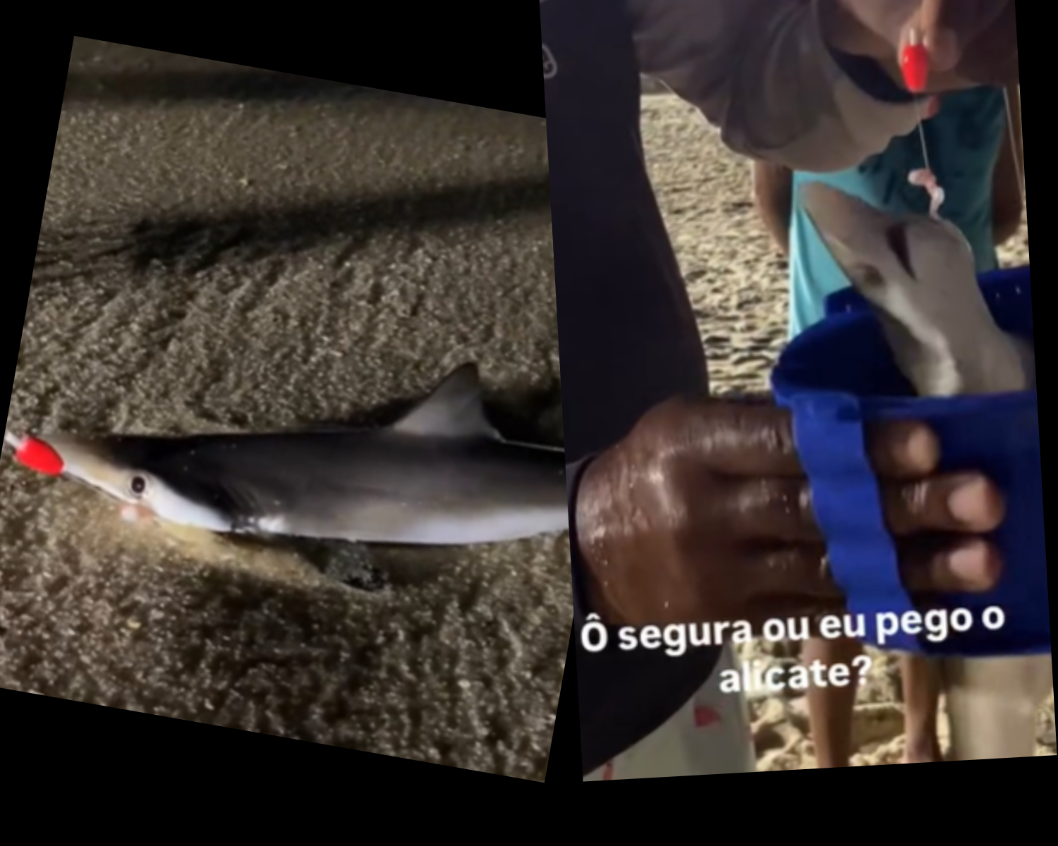 Cuidadosamente, o pescador teve ajuda de outros colegas para devolver o bichinho ao mar, são e salvo