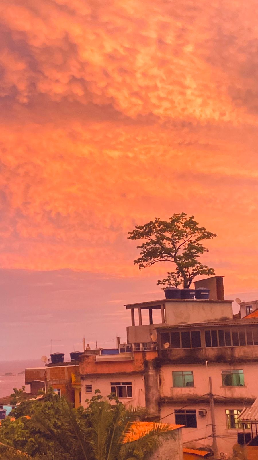 A cidade virou cenário de filme com o “céu de fogo”, em tons alaranjados e avermelhados, intensificado no pôr do sol